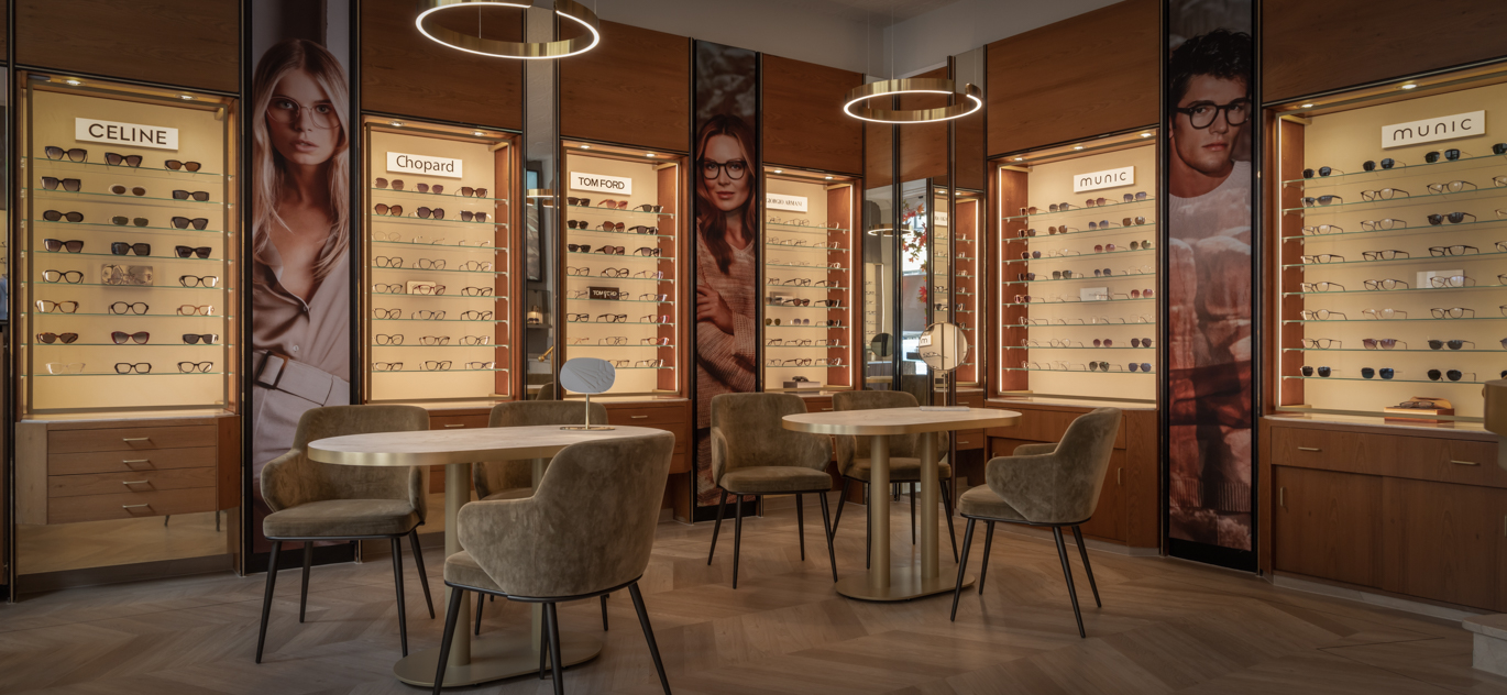 Rick Blankenstijn vertelt: “We ontmoetten Simone op de Opti Beurs in München, kort na coronatijd. Het gesprek was zeer aangenaam; een onderneemster met visie en smaak. Na een bezoek aan de optiekzaak hebben we de verbeterpunten in kaart gebracht. Het ontwerp was direct goedgekeurd, slechts enkele kleine aanpassingen. Door een mix van maatwerkmeubilair en high-end meubels van Forbettershops.com, gecombineerd met luxe, zachte wandbekleding, hebben we een fijne sfeer gecreëerd waarin Eyecare en Eyefashion centraal staan. De samenwerking was erg prettig en de restyling van de optiekzaak door WSB verliep razendsnel.”