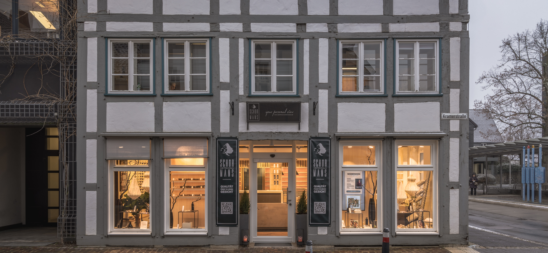 Een oud vakwerkhuis als vestiging voor Optikhaus Schürmans in Lemgo (DE). Met Kira als dynamisch ondernemer en een duidelijke mening over de sfeer en beleving, ontstaat een samenwerking waar de vonken vanaf springen. De buitenkant was een onveranderbaar gegeven, maar binnen is alles vernieuwd. Zo ontstond de opdracht voor een Scandinavische winkelinrichting voor de optiekzaak.