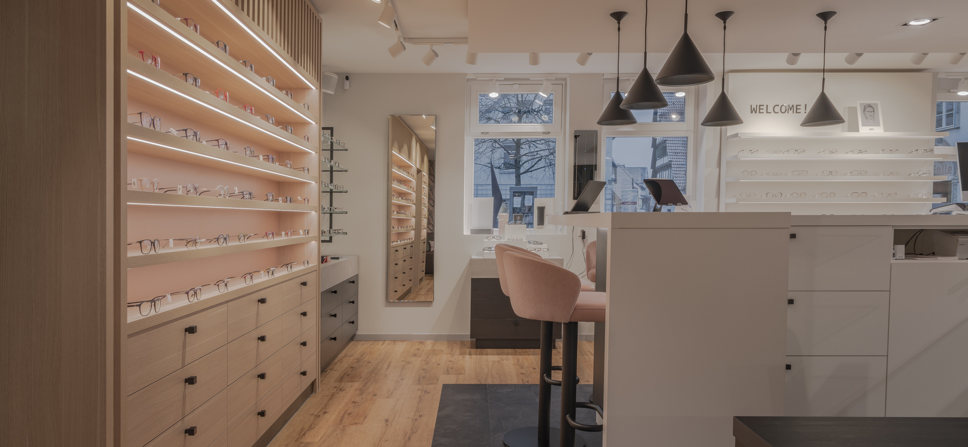 Scandinavische winkelinrichting voor Optikhaus Schürmans