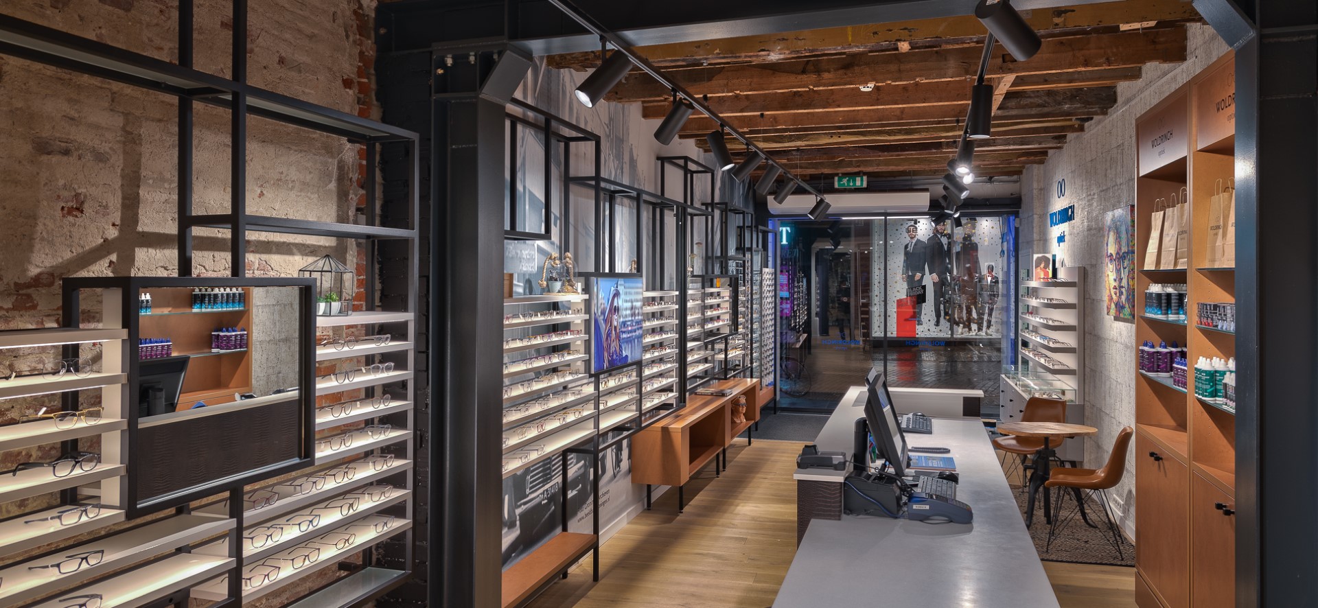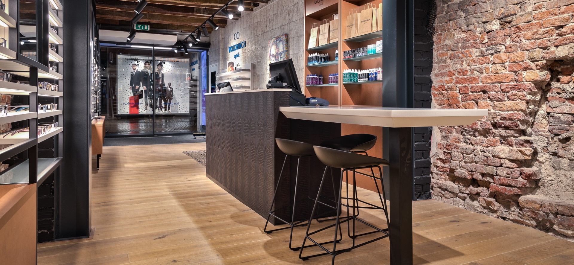 Afgelopen zomer heroponde Woldringh Optiek na een grondige verbouwing haar deuren. Het interieurconcept van de retaildesigners van WSB kenmerkt zich door een mooie mix van design, architectuuur en een goede routing. Nico Schreuder: ” Bij het ontwerp zijn wij opzoek gegaan naar de historie van Woldringh Optiek en de bouwkundige eigenschappen van het pand. De vormgeving ziet er modern uit, tegelijkertijd zie je het tijdloze karakter van het pand. De stenen wanden en de houten balken in combinatie met de stalen constructies zijn kenmerkend.