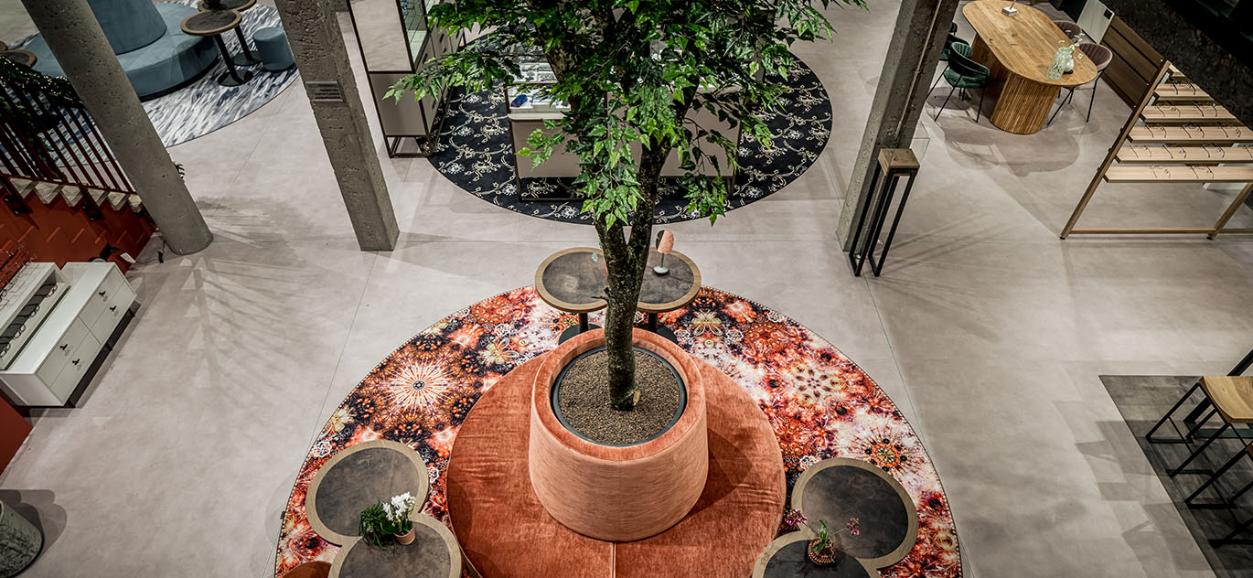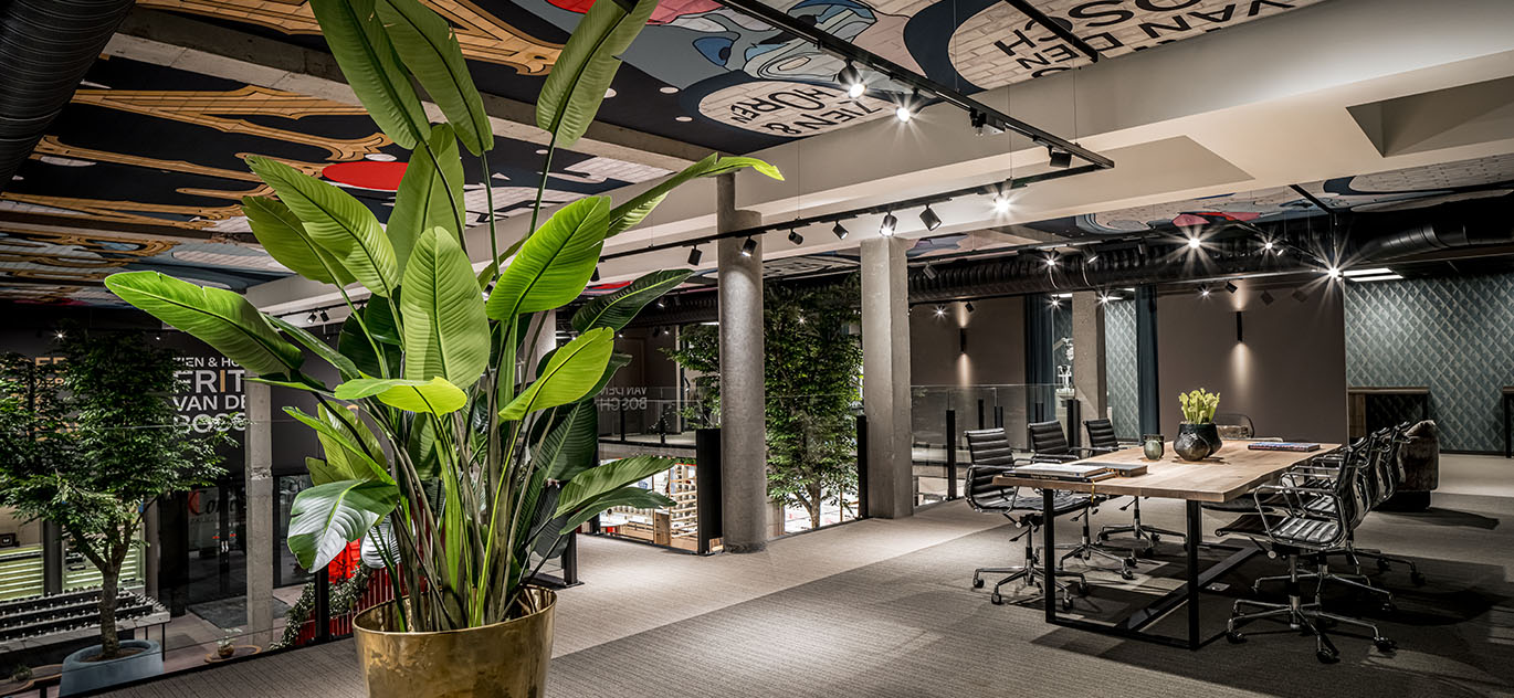 De winkel heeft verschillende eyecatchers. Twee enorme bomen van bijna 6 meter reiken tot het plafond. Daarnaast heeft WSB op een geweldige manier kunst en de naamgeving Antwerpen gecombineerd. Er zijn passende kleuren gebruikt in een op maat gemaakt plafondvisual.