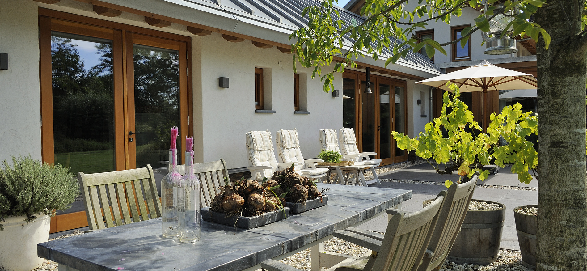In een landelijke omgeving een prachtige villa ontwerpen, van binnen en van buiten! Met veel aandacht voor Vorm, Passie en Materiaal! Onze opdrachtgever houdt van rust, unieke ontwerpen, eten en binnen van buiten genieten.