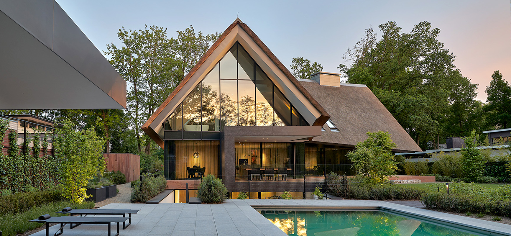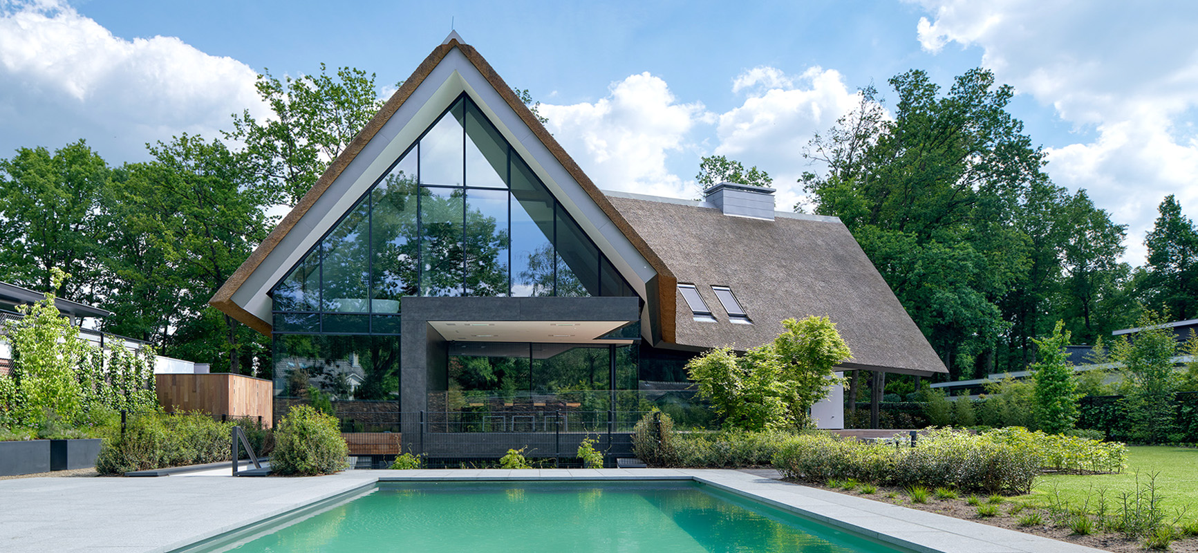 In omgeving Eindhoven verzorgde Emyko het turn key villa maatwerk interieur (ontwerp van ons label Emyko.com) van een volledig nieuw landhuis. Deze schitterende villa is ontworpen door LA Architecten uit Veghel. Het zeer goed doordachte ontwerp met een grote rieten kap, gestukadoorde wanden en grote transparante gevelvlakken zorgt voor een mooie aansluiting op de omgeving.