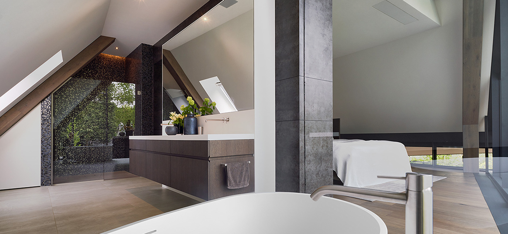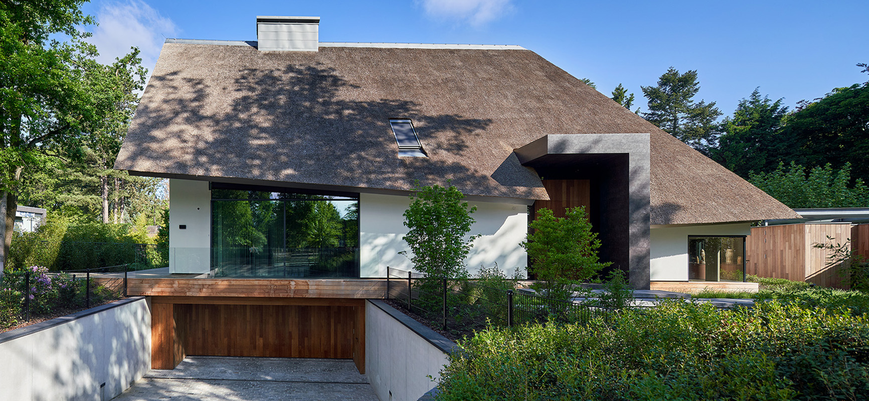 In goede samenwerking met Bouwbedrijf van Dinther realiseerde WSB Interieurbouw het volledige maatwerk interieur van het karakteristieke rietgedekte moderne landhuis. Keuken, living, haardpartij, werkkamer, strijkkamer, inloopkasten, bedombouw , alles van A tot Z.