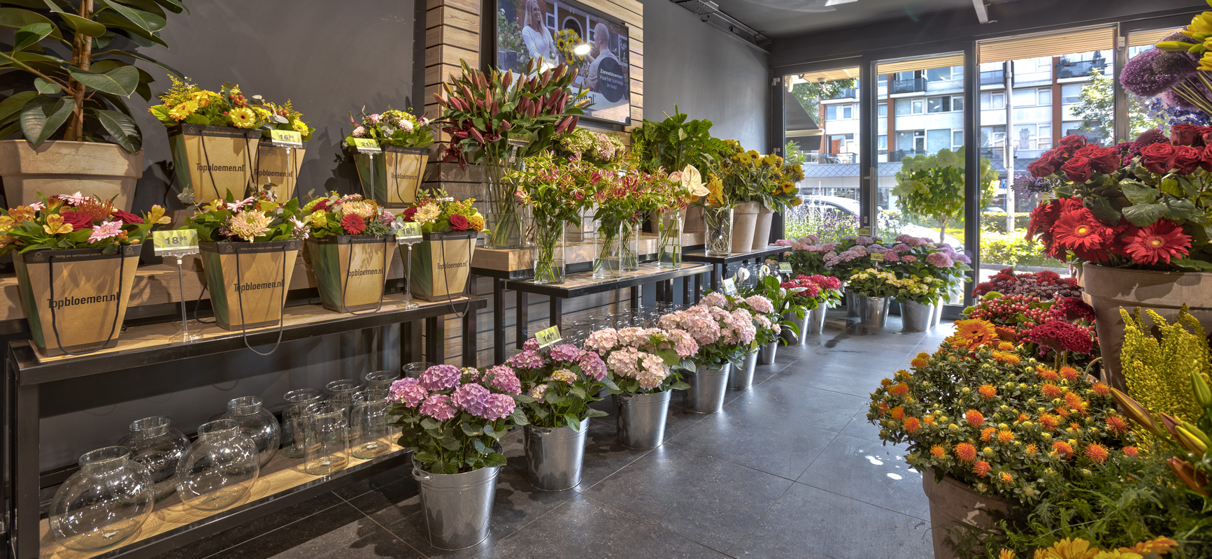 Na een periode van onstuimige groei heeft Topbloemen.nl een nieuwe stap gezet in retailland. WSB werd gevraagd een winkelconcept te creëren met een duidelijke herkenbaar beeld aan de buitenkant en een goede, praktishce constrastrijke uitstraling in de binnenkant, het winkelinterieur. In Amstelveen is daarmee de eerste winkel van Topbloemen.nl een feit!
