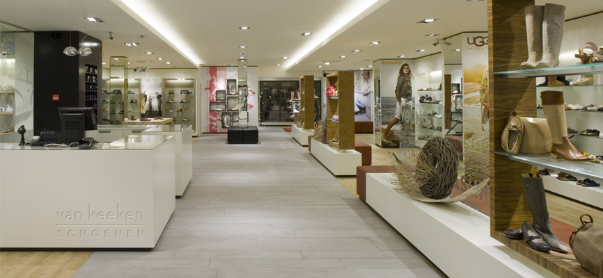 Van Keeken Schoenen in Alphen a.d. Rijn heeft het ontwerp turn key door WSB Interieurbouw laten realiseren vanwege de vakkundige en hoogwaardige kwaliteit van afwerking van het meubelmaatwerk en turn key winkelafbouw van vloer, plafond, verlichting, klimaattechnologie.