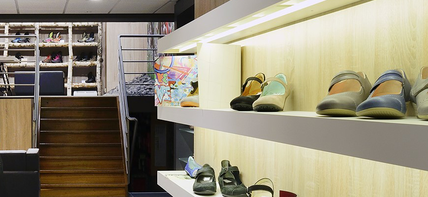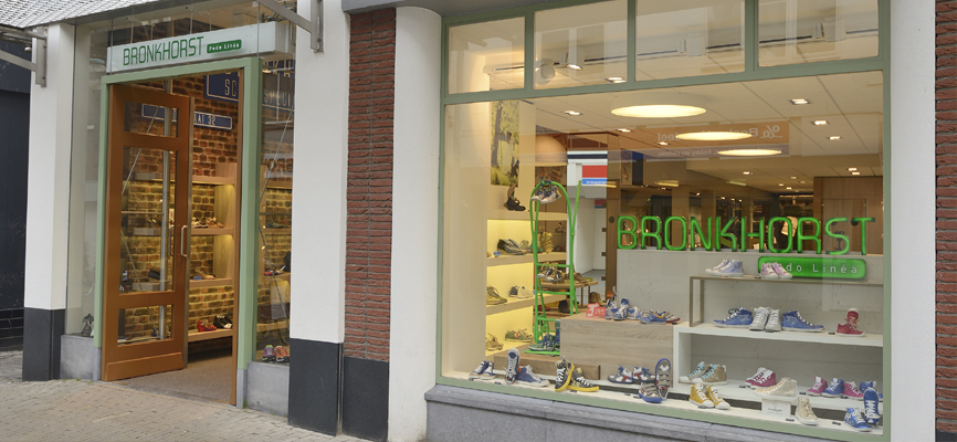 Bronkhorst Schoenen in Gorinchem>> Winkelontwerp en turn key winkelbouw door WSB. Schoenen Bronkhorst Podo Linéa is een schoenspeciaalzaak met een groot assortiment dames-, heren-, kinder- en outdoorschoenen. WSB is nummer 1 in retail design van toonaangevende luxe schoenwinkels. Het winkelconcept is warm, modisch en ook tegelijk gericht op Podo Linéa. Bronkhorst is lid van Garant.