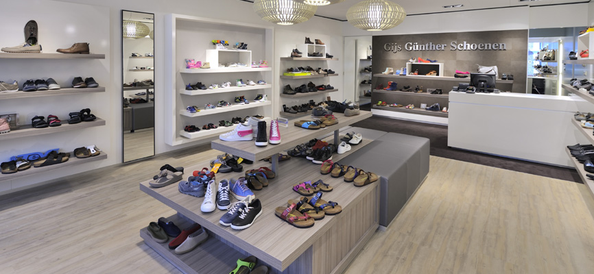 Gijs Gunther heeft optisch een veel grotere en prettiger winkelende schoenenzaak gekregen. Het is opvallend dat schoenmerken veel beter de weg vinden naar Gunther Schoenen na de verbouwing zodat ook het assortiment een enorme boost heeft gekregen. Verbouwen loont dus aan alle kanten: de inkoopkant en de verkoopkant. inrichting schoenenzaak