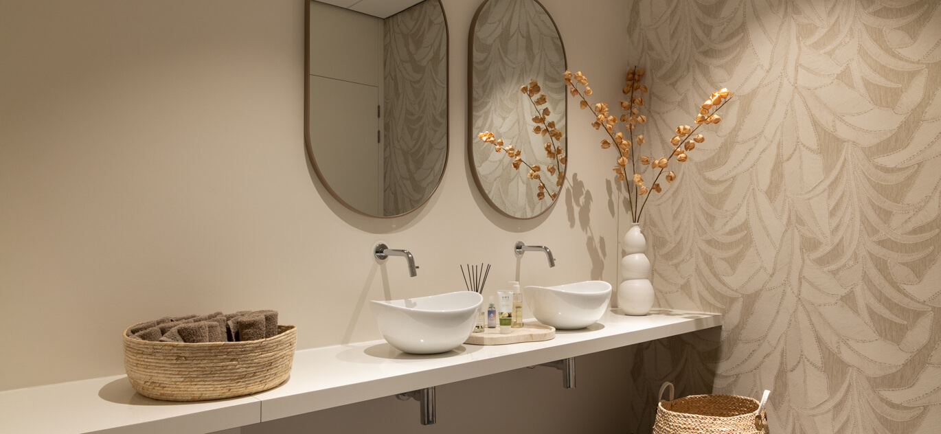 Bij het ontwerp lag de nadruk op het kiezen van materialen die zowel esthetisch als duurzaam zijn. De gekozen PVC marmerlook vloer sluit mooi aan bij de aardse uitstraling die Sietske voor ogen had. Het gebruik van natuurlijke materialen in combinatie met afgeronde vormen en complexe structuren geeft het interieur een tijdloze, verfijnde sfeer. Het resultaat is een harmonieus en toekomstgericht interieur dat perfect aansluit bij de visie van Body & Vital, én dat zichtbaar bijdraagt aan een duurzamere wellnessbranche.