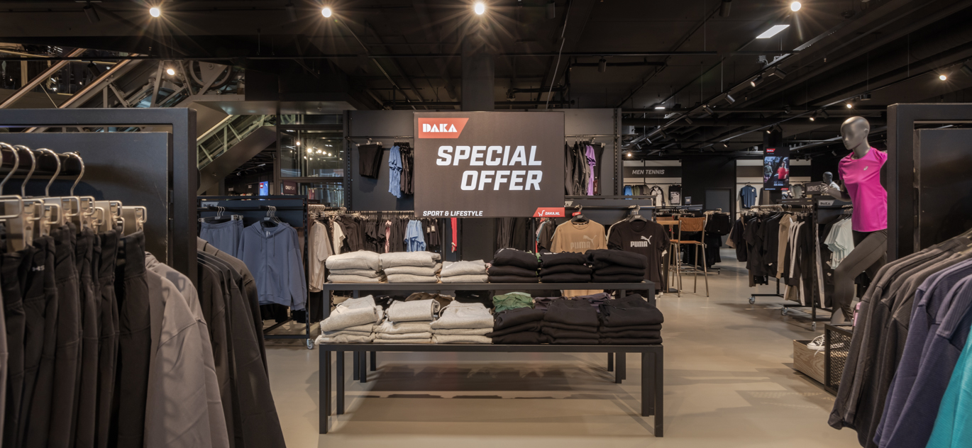 DAKA, een familiebedrijf dat in 1965 begon met een kleine sportwinkel in Rotterdam-Noord, is uitgegroeid tot dé Sport- & Lifestyle-keten van Nederland. In de nieuwe winkel in Venlo wordt de volledige collectie sport- en lifestyle-artikelen volgens het megastore concept gepresenteerd, met specialisaties in wintersport, outdoor, hockey, voetbal, running, fitness en tennis.