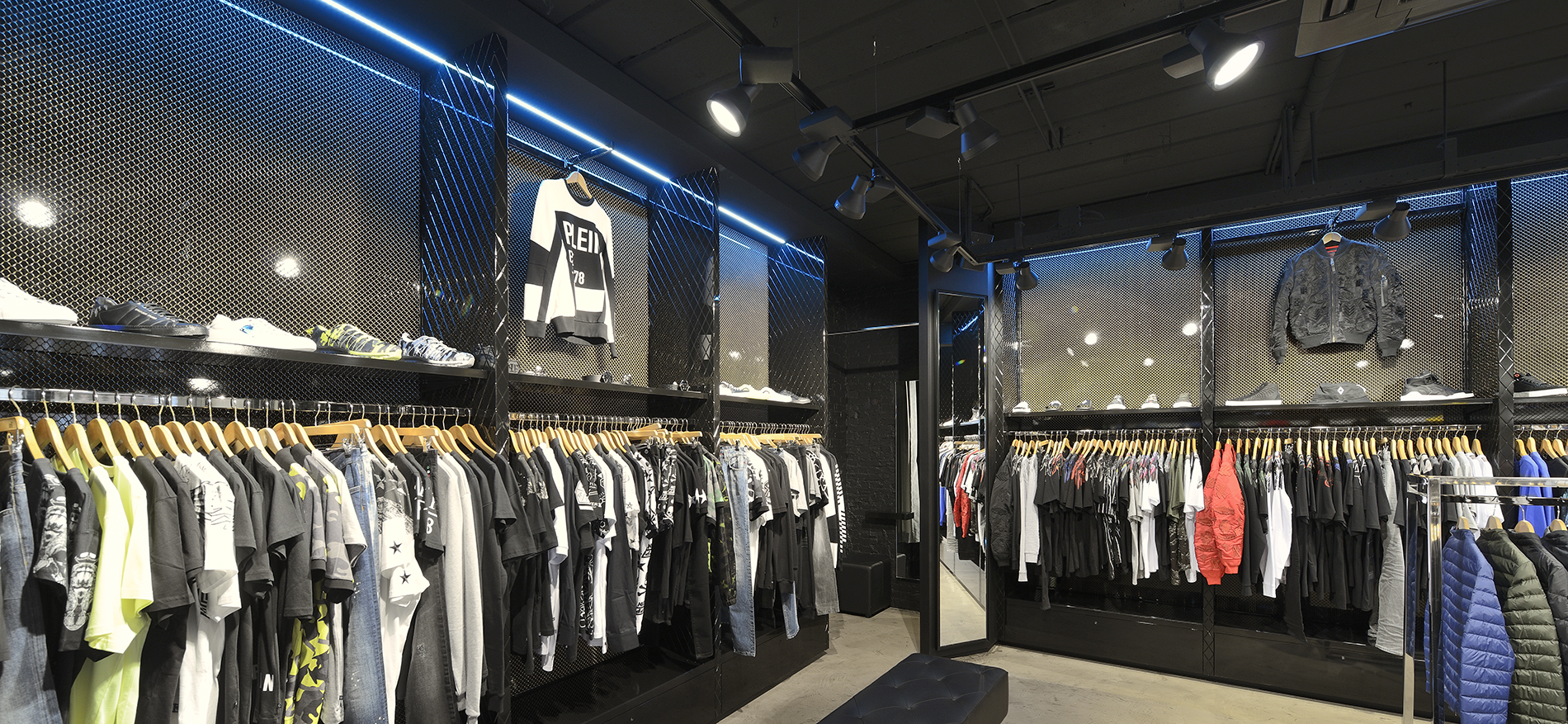 De aanlichting van uw kleding is cruciaal. De winkel moet stopkracht hebben. De potentiële klant (die buiten loopt) moet verleid worden om bij u binnen te stappen. Ons lichtontwerp gaat verder dan winkelverlichting. Het gaat om het DNA van het totaalplan.