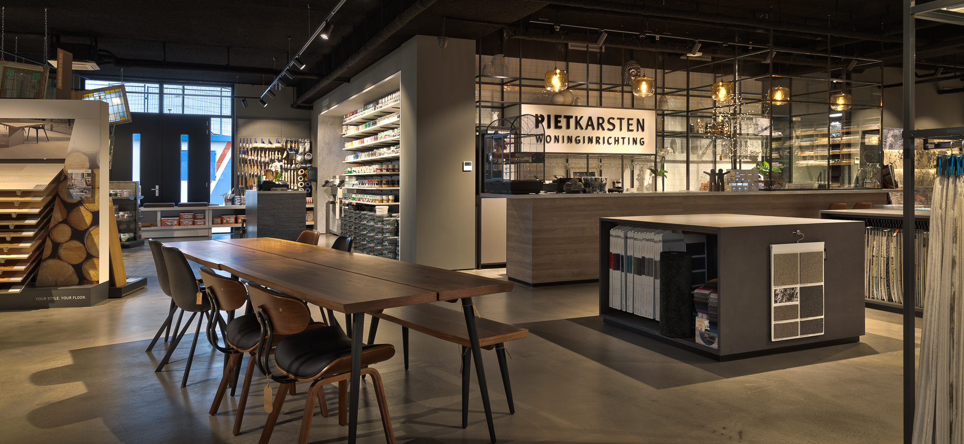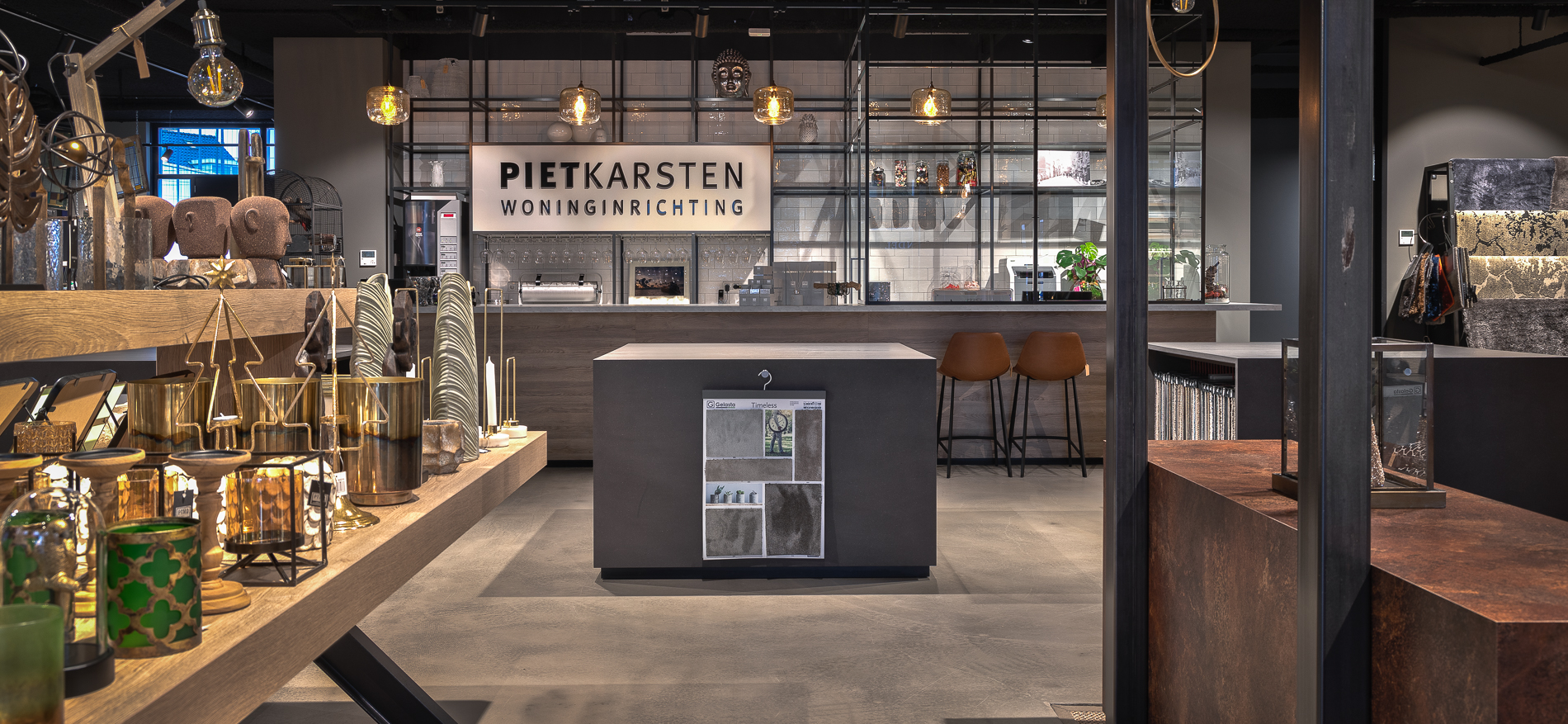 De interior designers van WSB hebben voor opdrachtgever Piet Karsten Woninginrichting een inspirerend winkelconcept getekend. Het ontwerp heeft een inspirerend karakter waar verblijfsduurverlenging, genieten, inspireren. In de ruimte zijn diverse inspiratiekamers vormgegeven en de ontvangst is vorstelijk, gezellig en lekker met een knipoog naar de horeca. De sfeerbeleving staat uiteindelijk ten dienste aan de commerciële presentatie van oplossingen en materialen voor woninginrichting. Het gaat daarbij om presentatietafels voor behangen, behangkasten, middenmeubels voor gordijnpresentatie, vloeren presentatie voor natuursteen, plavuizen, pvc en parket en vloerbedekking, verfpresentatie en inspiratiekamers.