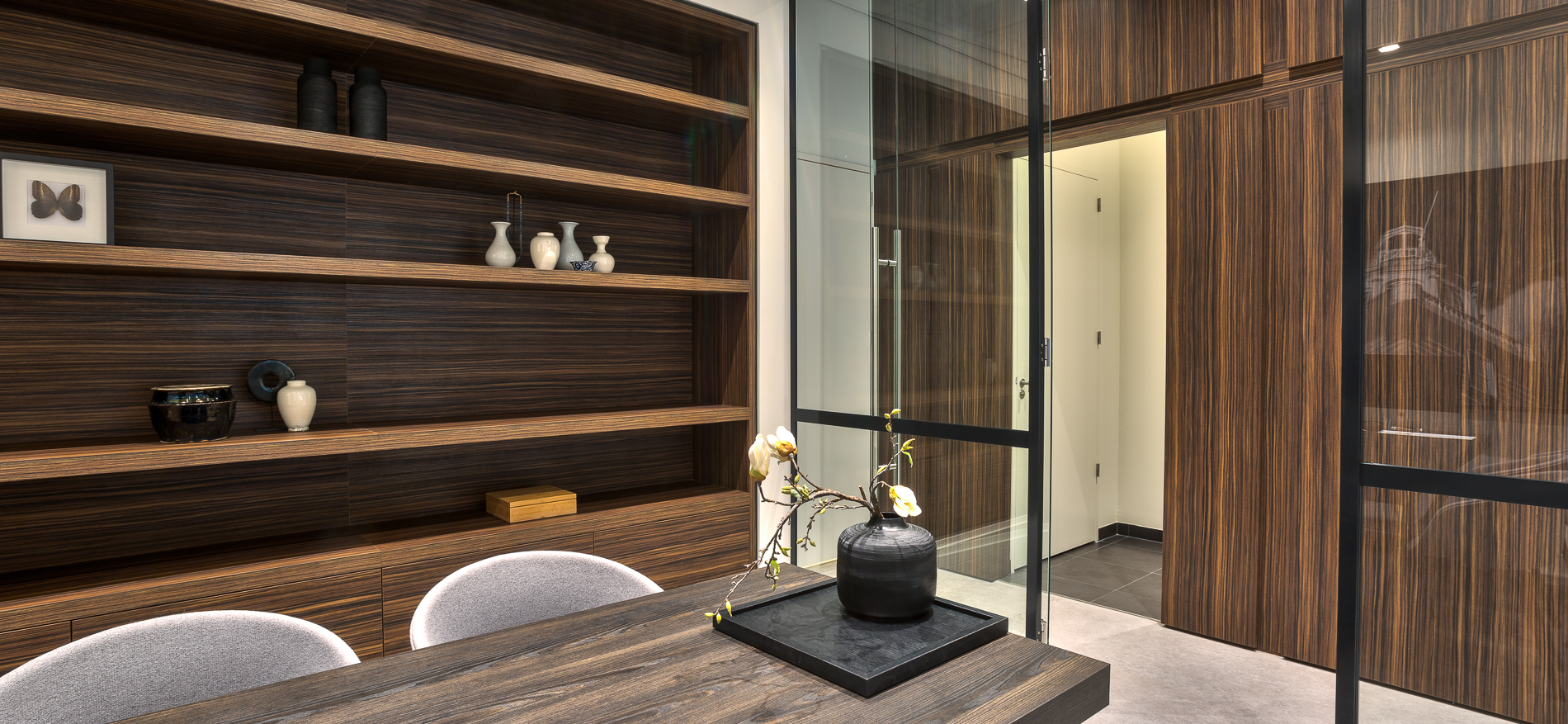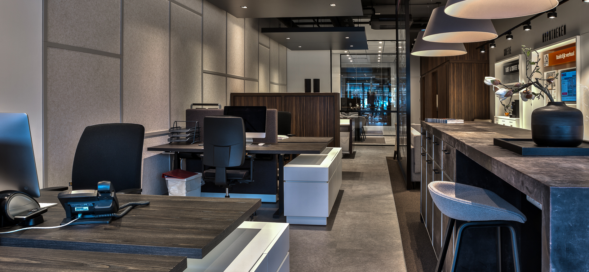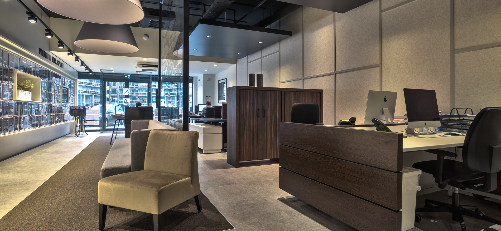 Op de Zeeuwse huizenmarkt is onze opdrachtgever een begrip. Vakmanschap, expertise, klantvriendelijkheid en snelheid van handelen zijn de kernwaarden. Het ontwerp voor het makelaarskantoor in Goes werd vormgegeven door de interieur architecten van WSB. In het design is nadruk gelegd op pure materialen zoals leer op de balie, verfijnde detailleringen in het meubelair van staal en freeswerk. Het coromandel hout in combinatie met de contrastrijke maar rustige kleuren maken het bezoeken van dit makelaarskantoor plezierig.